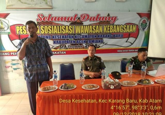 ACEH TAMIANG, Wikimedan | Danramil 02/Krb Kodim 0117/Atam Kapten Inf Arif Bima Tejo Melaksanakan rangkaian kegiatan sosialisasi Wasbang di dua Desa. Desa Johar bertempat di ruangan Sekolah Madrasah dan Desa Kesehatan bertempat di ruangan Sekolah SDN 1 Desa Kesehatan, Kec. Karang Baru Kab. Aceh Tamiang, Minggu (9/12/2018).