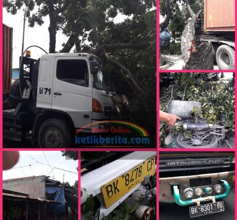 Lanjutnya,”namun nasib apes menimpa supir truk Trado nilik PT Belawan Indah itu,saat truk melaju dari sisi kiri badan jalan, sang supir tidak menyadari kalau sudut Container yang ditarik truk naas itu menabrak batang pohon mahoni yang persis tumbuh didepan sebuah kios usaha air minum isi ulang milik warga setempat.Tanpa dikomando batang pohon mahoni seketika tumbang yang berimbas putusnya kabel jaringan listrik,rusaknya kios usaha warga dan rusak parahnya 1 (satu) unit sepeda motor warga yang kebetulan diparkir didepan kios air minum isi ulang itu,”terangnya.
