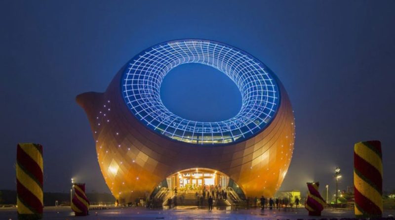 7. Guotai Arts Center di Chongqing terbentuk dari sumpit-sumpit rahsasa yang membentuk panci. Meski kelihatan absurd, tapi warga sering berkunjung untuk melihat pertunjukan di sini loh