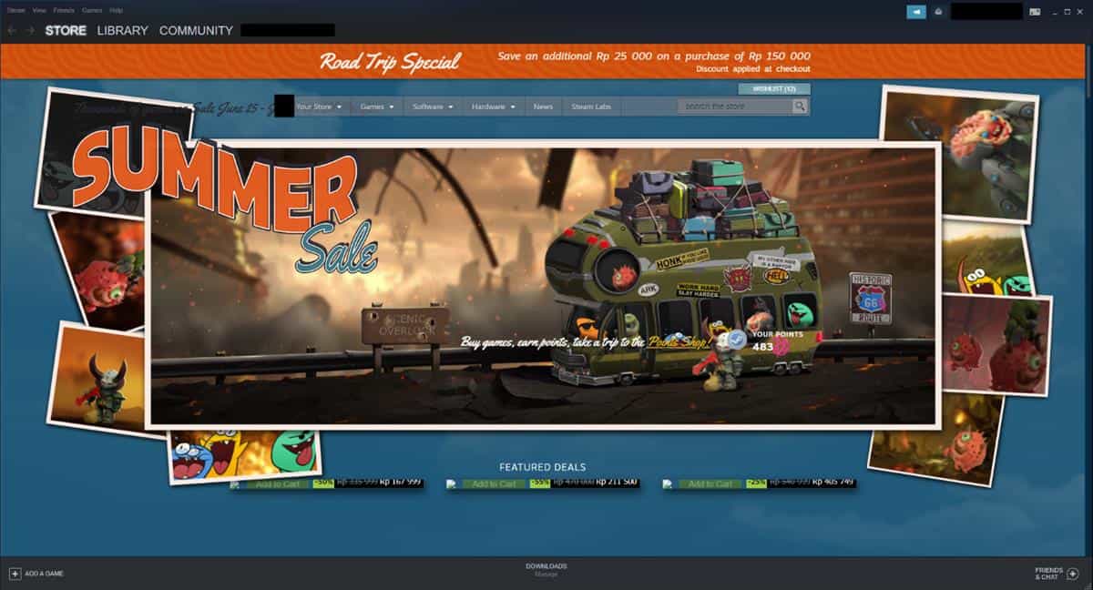 Kalian bisa melakukan pembelian game dalam menu Store dalam aplikasi Steam. Kalian juga bisa melakukan pembelian melalui web store.steampowered.com. Nantinya game yang sudah kalian beli akan masuk ke dalam Library dalam aplikasi Steam yang terpasang dan bisa kalian download.