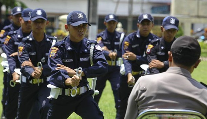 Pelatihan anggota Satpam oleh Polri [sumber gambar]