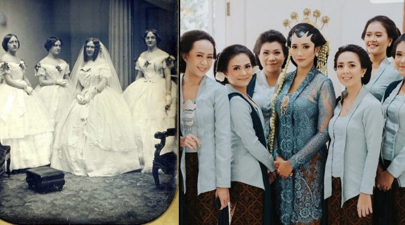 Tradisi bridesmaid yang mengenakan busana seragam bermula pada saat pernikahan Ratu Victoria di tahun 1841, seperti penuturan pakar sejarah fesyen dan tekstil dari University of Brighton, Lou Taylor. Kala itu, pernikahan kerajaan berlaku seperti upacara pemakaman yang diatur rapi dan cermat serta mendapat dukungan dari masyarakat. Di mana untuk upacara pemakaman bangsawan, Lord Chamberlain selaku pejabat senior Rumah Tangga Kerajaan Britania Raya menentukan busana berkabung bahkan hingga ke jenis kain bagi mereka yang mengikuti upacara.