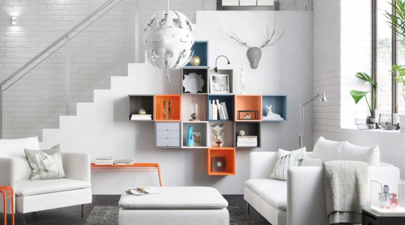 4. Untuk menyemarakkan ruang keluarga, menerapkan rak tempel warna-warni dengan latar putih juga menjadi point of view yang menarik
