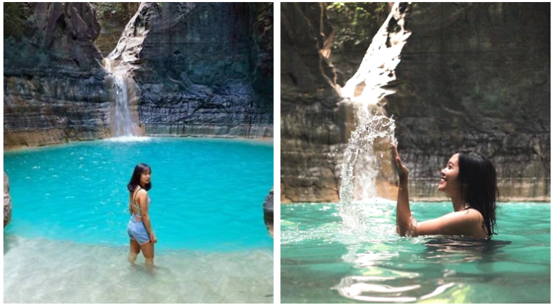 Sesampainya di sana, kamu akan menemukan air terjun yang terlindungi oleh tebing. Tebing kapur melingkar penuh, hanya menyisakan sedikit untuk aliran air masuk ke ‘kolam’ dan terbuka di bagian ujung yang sebaliknya. Dari situlah pengunjung bisa masuk. Untuk ‘kolam’ yang menampung air terjun ini, kedalamannya 8 meter. Buat kamu yang takut karena terlalu dalam, alirannya membentuk sebuah kolam kecil dengan kedalaman hanya 1,5-2 meter. Mungkin kamu cocok di sana. Tapi kalau untuk berenang lebih seru di tempat yang dalam. Banyak anak dan turis yang lompat dari tebing menuju ke kolam yang dalam.