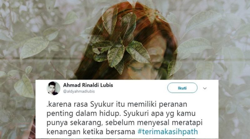 Kepergian Path mengajarkan kita akan pentingnya bersyukur. Khususnya dalam hal menghargai sebuah kehadiran. Disadari atau nggak kita seringkali lena merawat hubungan, kita sering mengabaikan pasangan karena kesibukan, ssering membuatnya kecewa, dan lain sebagainya.
