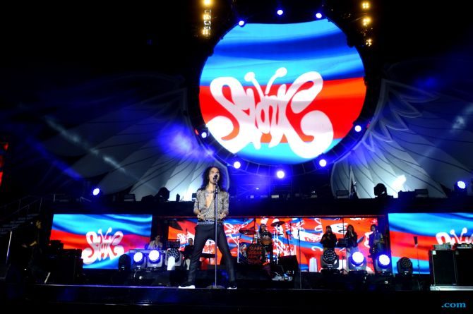 Penampilan Slank di konser ulang tahun ke-35 di SUGBK, Minggu (23/12) malam (ISSAK RAMDHANI/JAWA POS)