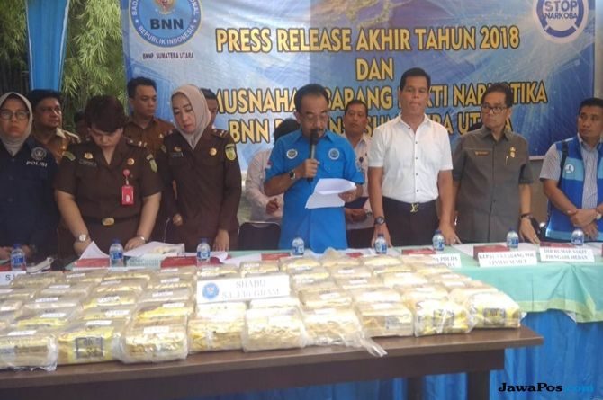 Wikimedan – Sebanyak 53,3 Kg sabu dimusnahkan Badan Narkotika Nasional Provinsi Sumatera Utara (BNNP Sumut), Selasa (11/12). Pemusnahan dilakukan di pelataran Rumah Sakit Umum Daerah (RSUD) dr Pirngadi Kota Medan.