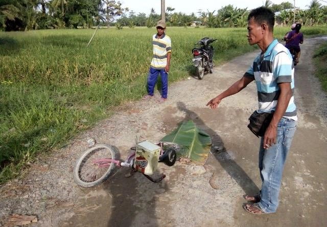 Sei Rampah sergai, menabrak sepeda dayung yang dikendarai oleh Raju Arya Pradana, umur 9 tahun, pelajar SD, penduduk Dsn I Desa Sei Rejo Kec. Sei Rampah kab Serdang bedagai.