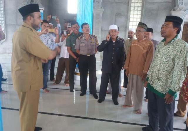 ACEH TAMINANG, Wikimedan | Danramil 04/Bendahara Kodim 0117/Aceh Tamiang Kapten Inf M.Rizal Menghadiri Acara Peresemian Masjid Baiturrahman di Desa Marlempang Kecamatan. Bendahara Kabupaten. Aceh Tamiang, Selasa (11/12/2018).