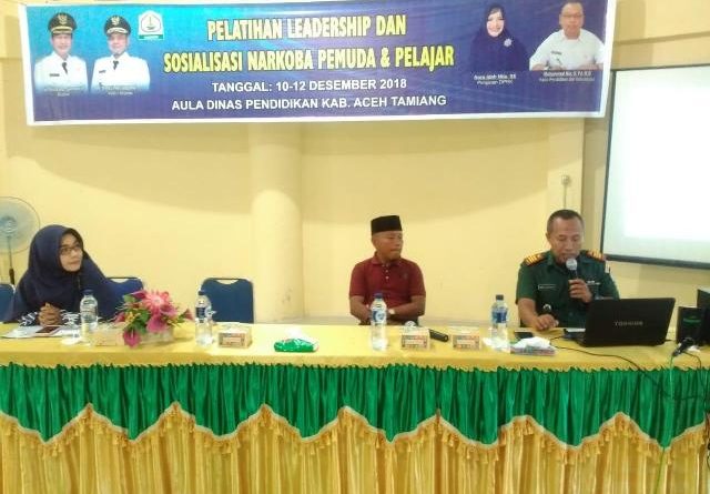 ACEH TAMIANG, Wikimedan. | Danramil 05/Thu Kodim 0117/Atam Kapten Arh Nana Sutiana Selaku Pemberi Materi Wasbang Terhadap Pemuda dan Pelajar dalam Peningkatan Kemampuan Leadership. Di Aula Dinas Pendidikan kab.Atam di Desa Bundar Kec. Karang Baru Kab. Aceh Tamiang, Selasa (11/12/2018).