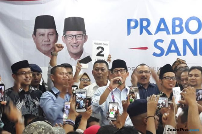 Saat memberikan sambutan didepan relawannya, Sandi menanyakan kesiapan pendukungnya dalam upaya meraih kemenangan di Pilpres. Relawan pun menjawabnya dengan tegas.