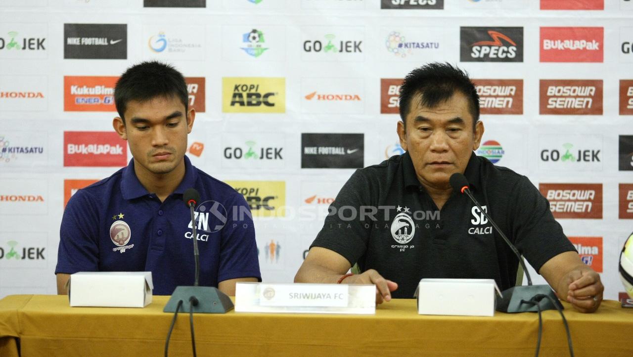 Pelatih Sriwijaya FC (Subangkit) saat konferensi pers jelang laga PSM Makassar vs Sriwijaya FC, di Hotel Same Makassar, Sabtu (22/09/18).