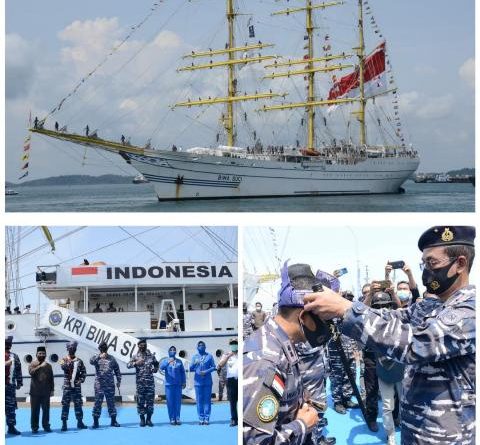 Gegap Gempita Sambut Kedatangan KRI Bima Suci-945 Di Tanjung Uban