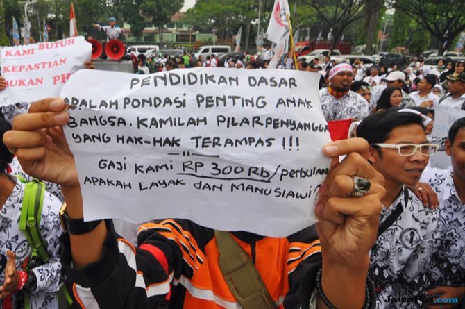 Wikimedan – Pembagian formasi guru pada rekrutmen calon pegawai negeri sipil (CPNS) 2018 mendapat reaksi dari tenaga honorer. Akibatnya para pahlawan tanda jasa itu menggelar aksi mogok mengajar di sejumlah daerah. Demo itu pun berlangsung serentak.