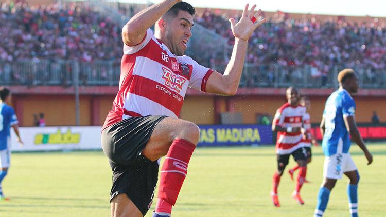 Selebrasi Fabiano Beltrame usai cetak gol ke gawang Persib.