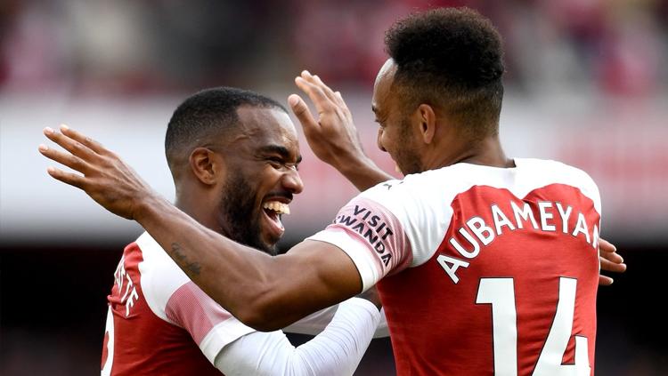 Aubameyang dan Lacazette menjadi dua pencetak gol Arsenal saat melawan Everton.