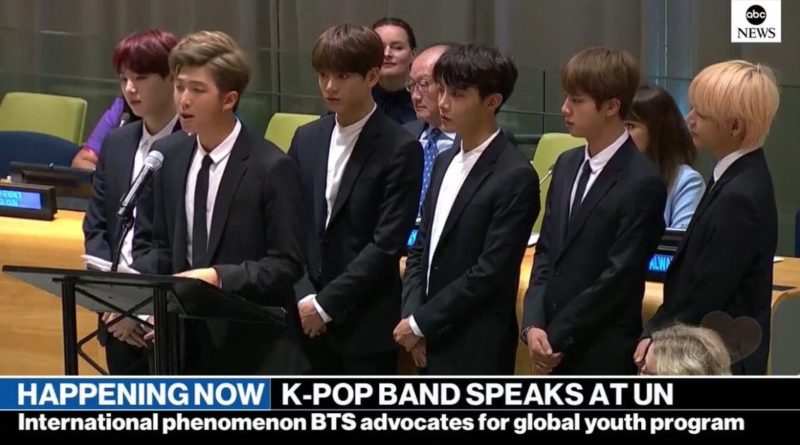 BTS (Bangtan Boys), salah satu boyband asal Korea Selatan berhasil mengukir prestasi. Pada 24 September kemarin, mereka terpilih untuk hadir dan berpidato dalam acara pembukaan sidang umum PBB (Perserikatan Bangsa-Bangsa) yang ke-73 di New York, Amerika Serikat. BTS menjadi artis K-Pop pertama yang mendapatkan kesempatan itu. Tentu saja hal ini langsung menghebohkan publik. Bahkan mereka sempat menjadi trending topic di Twitter. Dalam pidato singkat mereka, yang diwakili oleh Kim Nam Joon atau yang dikenal dengan nama panggung RM, BTS mengajak pemuda dan pemudi sedunia untuk mengikuti suara hati dan melihat diri dengan kacamata diri sendiri.