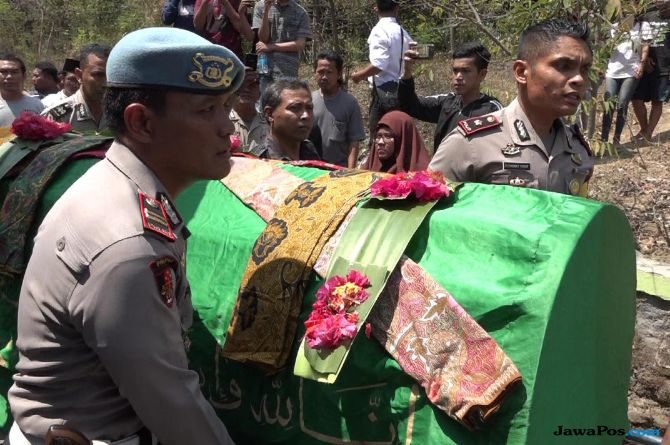 Pengiringan jenazah Haringga ke tempat peristirahatan terakhir di TPU Desa Kebulen, Kecamatan Jatibarang, Kabupaten Indramayu diantar oleh keluarga, rekan dan jajaran dari Kepolisian Resor Indramayu.