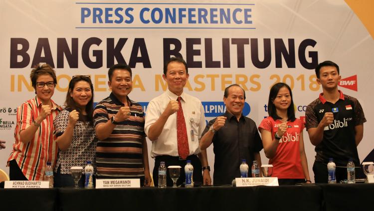 Ihsan Maulana dan Fitriani ikut konferensi pers Indonesia Master 2018.