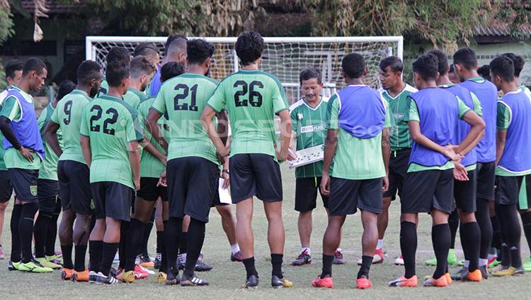 Djajang Nurdjaman saat memimpin latihan Persebaya di Lapangan Karanggayam.