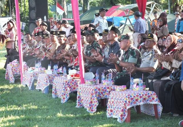 ACEH TAMIANG, Wikimedan | Kepala Staf Kodim (Kasdim) 0117/Atam Mayor Inf A. Ayani hadiri acara pembukaan Kemah Karakter ke-1 Tahun 2018 (Kegiatan Pembinaan Kepramukaan) jenjang SD Dan SMP Sekabupaten Aceh Tamiang, bertempat di Lapangan depan SMPN1 Karang Baru. Desa Bundar Kec.Karang Baru Kab.Aceh Tamiang, Sabtu 1/12/2018).