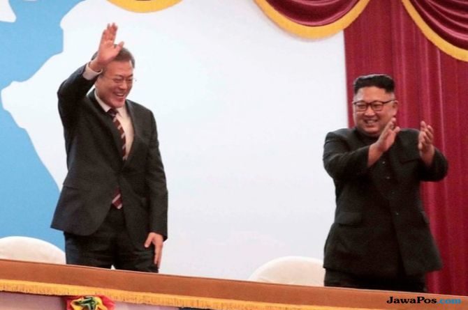 Pemimpin Tertinggi Korea Utara (Korut) Kim Jong Un dan Presiden Korea Selatan (Korsel) Moon Jae In memulai pertemuan ketiga tahun ini pada Selasa, (18/9), di Pyongyang (The Japan Times)