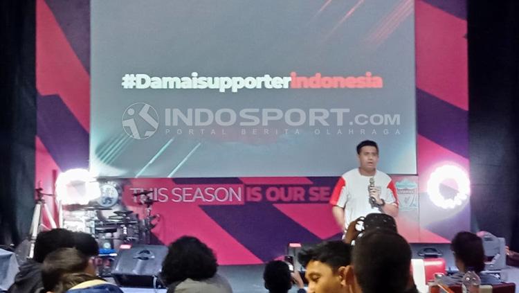 Di akhir sambutan, Abinery mengajak para partisipan yang ada untuk berteriak bersama seruan damai, “Mari damai, bersatu sebagai suporter Indonesia!”
