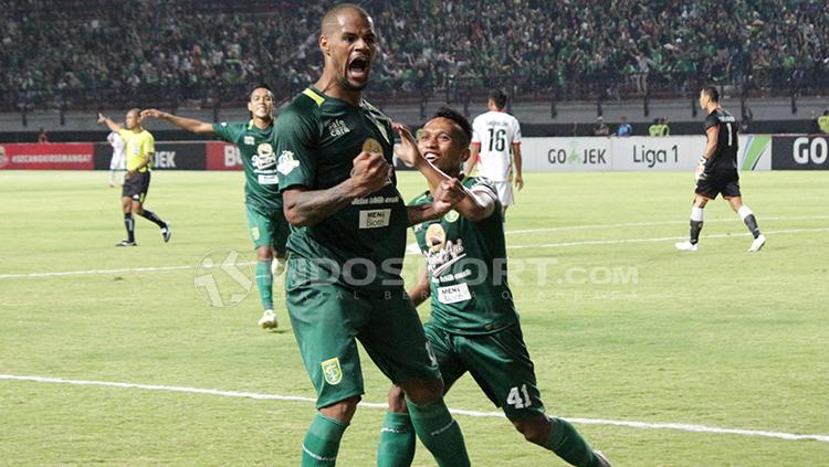 David da Silva berselebrasi usai mencetak gol ke gawang Mitra Kukar.