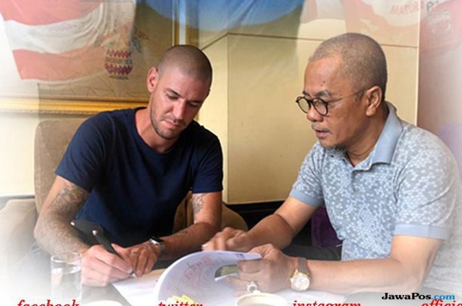 Pemain berpaspor Australia itu sudah teken kontrak dengan manajemen Madura United yang diwakili manajer tim Haruna Soemitro. Tanda tangan kontrak dipublikasikan pada Jumat (14/12) di akun Twitter Madura United.