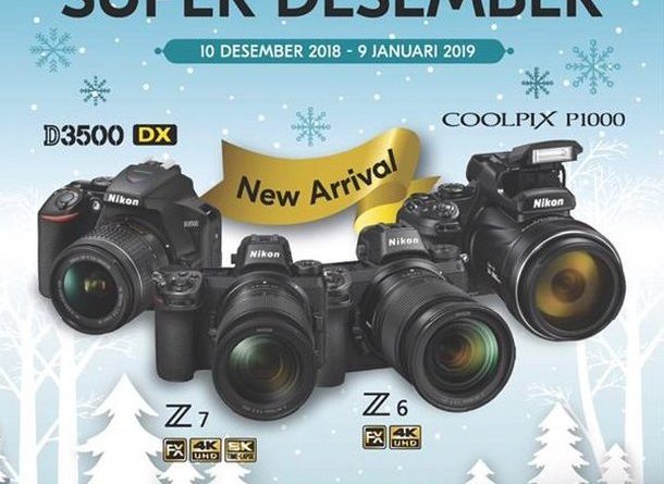 Setiap tahunnya menyambut liburan natal dan tahun baru selalu dimeriahkan dengan beragam promo menarik. Jika Anda tertarik untuk membeli kamera Nikon, menutup tahun 2018 Nikon menggelar Nikon Promo Super Desember untuk beragam model kamera dan aksesorisnya. Promo ini digelar dari tanggal 10 Desember 2018 hingga 9 Januari 2019.