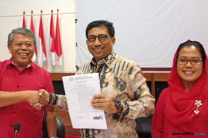 Nama Mahfud ini diumumkan dalam pertemuan lintas partai yang berlangsung di kantor DPD PDI Perjuangan, Jalan Kendangsari, Surabaya, Rabu (19/9) malam. (Moh Mukit/Wikimedan)