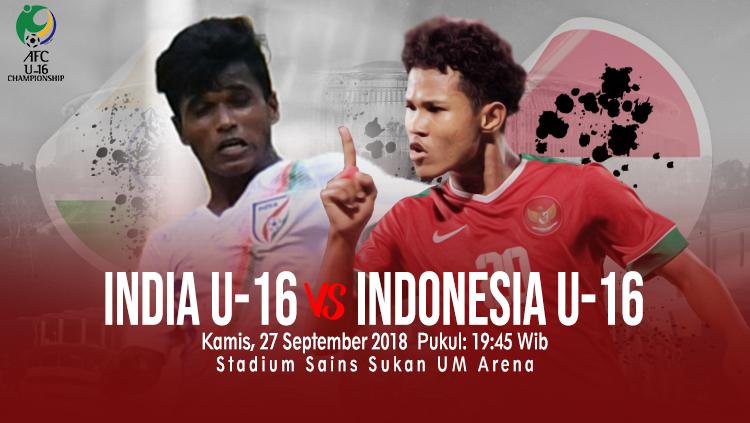 Timnas U-16 hanya membutuhkan hasil imbang untuk memastikan lolos ke fase gugur. Indonesia juga masih berpeluang lolos meski kalah atas India tergantung pada laga antara Iran U-16 vs Vietnam U-16.