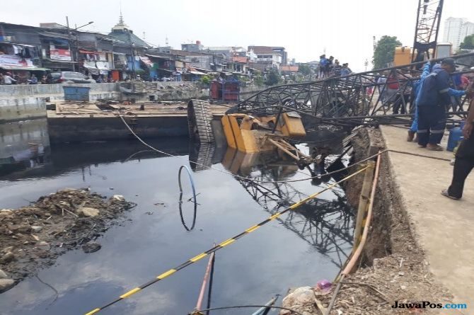 Wikimedan – Akibat adanya insiden crane yang tergelincir di Kali Item, Jalan Dakota Raya, Jakarta Pusat, Kamis (6/12), pekerjaan proyek dihentikan sementara. Penyebab jatuhnya crane akan diinvestigasi terlebih dahulu.