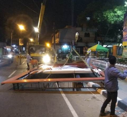 MEDAN Wikimedan | Tak ada istilah libur bagi Tim Gabungan Pemko Medan dalam membongkar papan reklame bermasalah di Kota Medan. Sabtu (1/12) malam sampai Minggu (2/12) dinihari, tim gabungan yang dikomandani Satpol PP Kota Medan kembali menumbangkan 5 unit papan reklame bermasalah dari tiga lokasi berbeda.