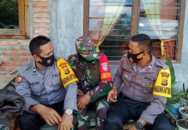 LANGSA (Aceh) Wikimedan | Babinsa Koramil 23/Langsa Timur Kodim 0104/Aceh Timur Kopda Panjaitan bersama Babinkamtibmas Polsek Langsa Timur Polres Langsa Aiptu Teguh dan Briptu Jaka. P laksanakan Komunikasi Sosial (Komsos) dengan berkoordinasi tentang penanganan penyebaran Covid-19, di Gampong Sukarejo, Kecamatan Langsa Timur, Kota Langsa, Jum’at (25/9/2020).
